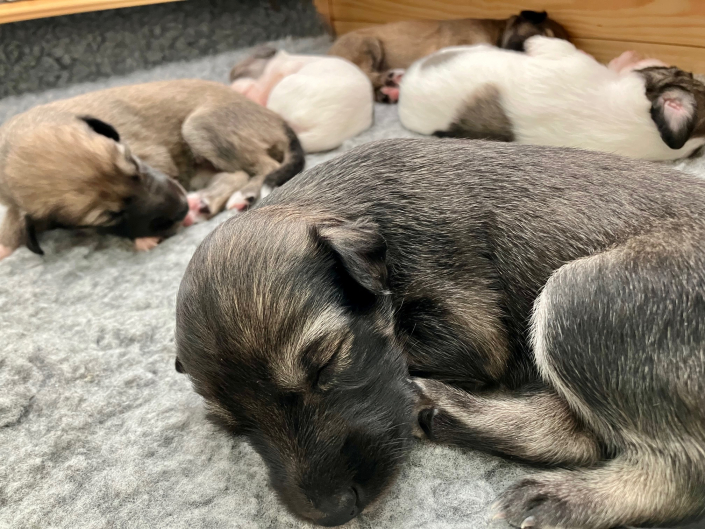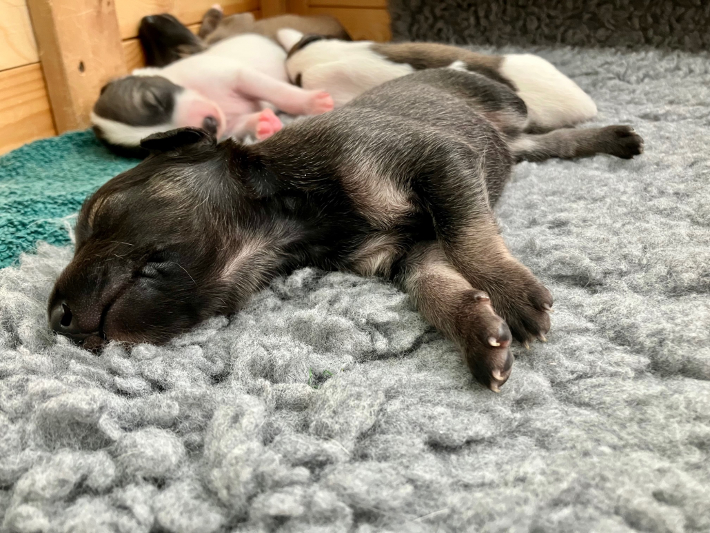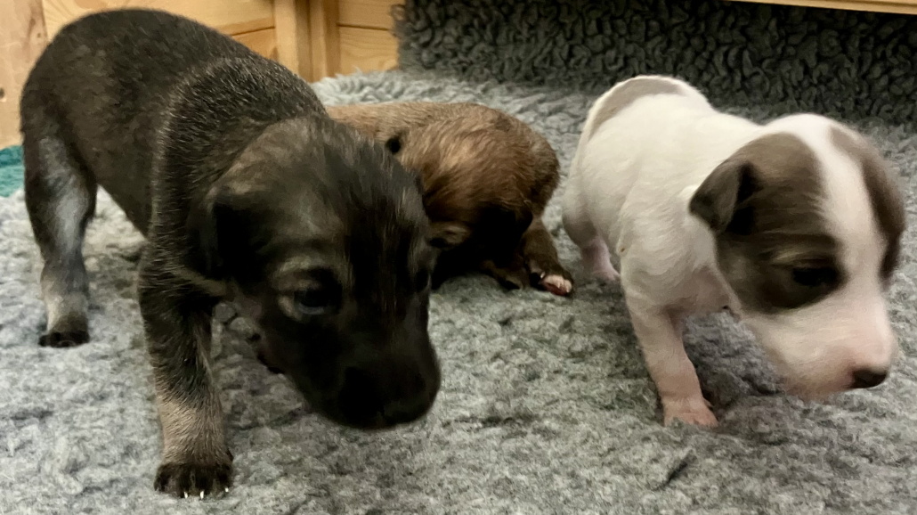 Jetzt werden die Süßen super neugierig, reagieren auf die Umwelt, die ersten Hüpfer und Sprünge werden geübt – und mal geschaut, ob es auch eine Welt außerhalb der Wurfkiste gibt.