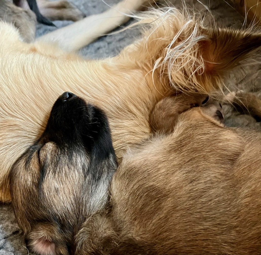 Alle trinken gleichzeitig, dann wird sich wieder verteilt und Mama hat einen Augenblick Ruhe – so süß.