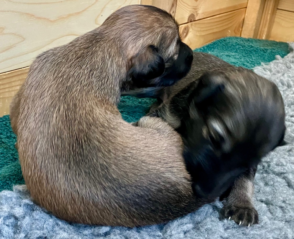 Nanu, es gibt ja noch Geschwisterchen – erste Spiele miteinander: zahnloses und zaghaftes Beißen in fremde Beinchen, die man so entdecken kann.